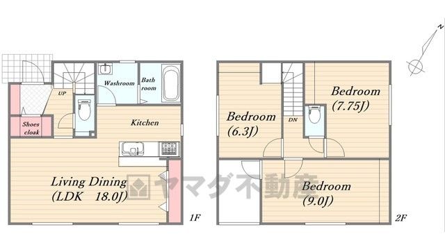 LDK18畳、洋6.3畳、洋7.7畳、洋9畳 |