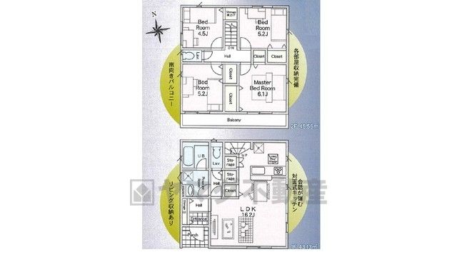 LDK16.2畳、洋4.5畳、洋5.2畳、洋5.2畳、洋6.1畳 |