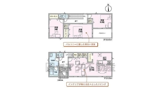 LDK19.5畳、洋6畳、洋7.5畳、洋6.5畳 |