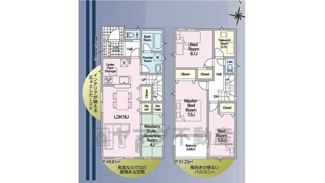 LDK16畳、和4畳、洋6.1畳、洋7.5畳、洋5.5畳、S2.5畳 |