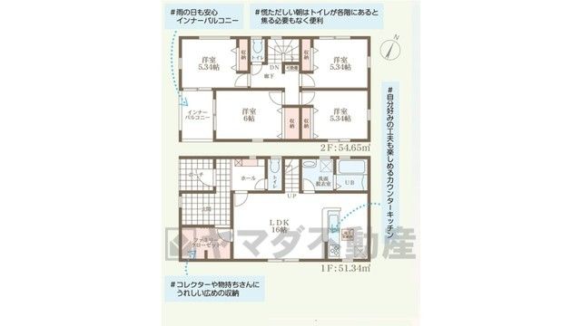 LDK16畳、洋5.3畳、洋5.3畳、洋6畳、洋5.3畳 |