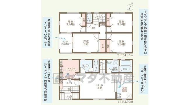 LDK16畳、洋5.3畳、洋5.3畳、洋6畳、洋5.3畳 |