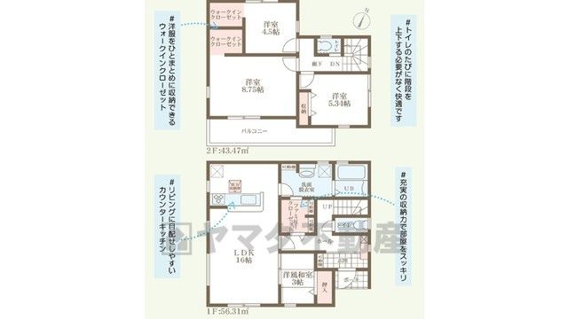 LDK16畳、和3畳、洋4.5畳、洋8.7畳、洋5.3畳 |