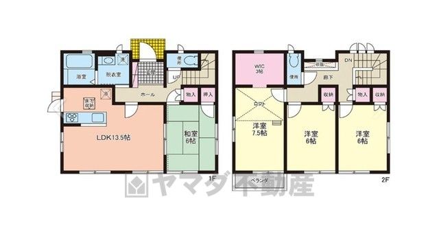 LDK13.5畳、和6畳、洋6畳、洋6畳、洋7.5畳 |