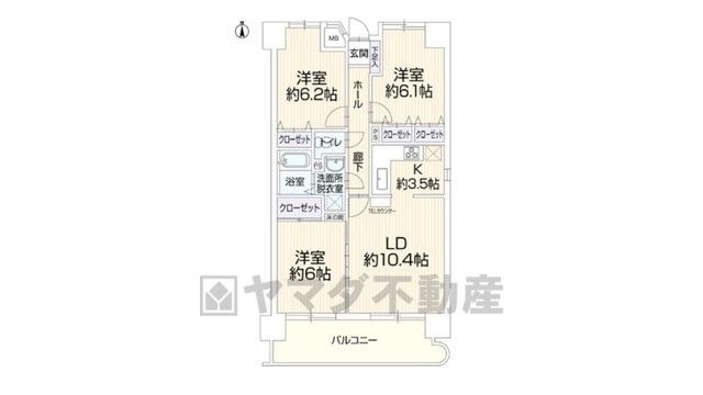 | 間取り詳細 | LD10.4畳、K3.5畳、洋6畳、洋6.2畳、洋6.1畳 | 土地権利 | 所有権 |