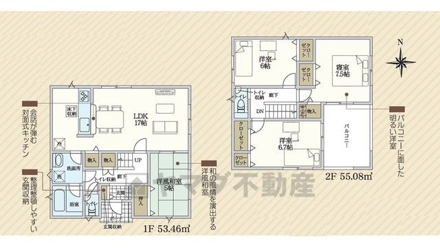 LDK17畳、和5畳、洋6畳、洋6.7畳、洋7.5畳 |