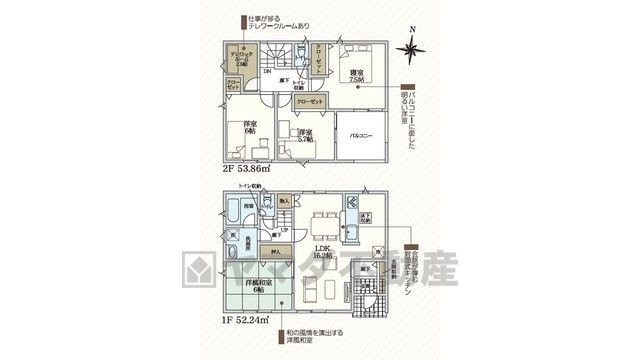 LDK16.2畳、和6畳、洋6畳、洋5.7畳、洋7.5畳、S2.5畳 |