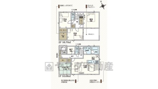 LDK16畳、和4.5畳、その他2畳、洋6畳、洋6畳、洋8畳 |