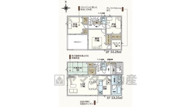 LDK17畳、和5畳、洋5.7畳、洋7.5畳、洋5.2畳 |
