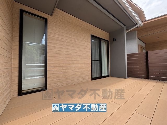 リビングに面した広々としたウッドデッキ