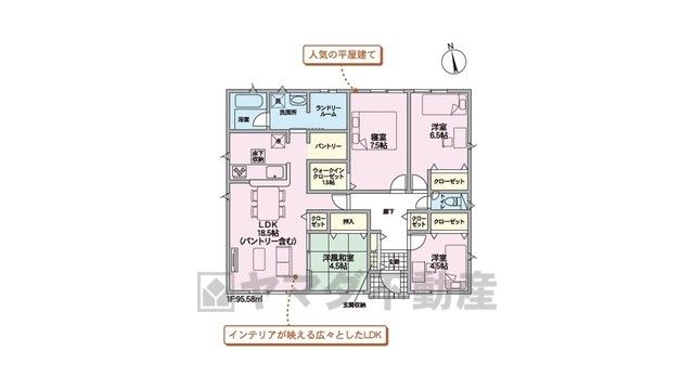 LDK18.5畳、和4.5畳、洋7.5畳、洋6.5畳、洋4.5畳 |