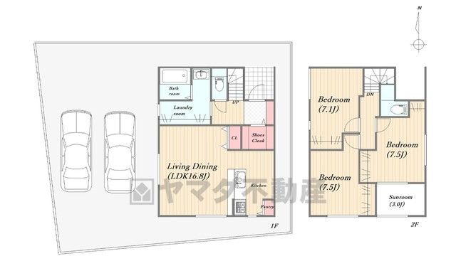 LDK16.8畳、洋7畳、洋7.5畳、洋7.5畳、その他3畳 |