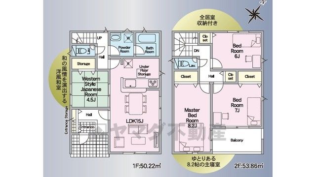 LDK15畳、和4.5畳、洋6畳、洋8.2畳、洋7畳 |