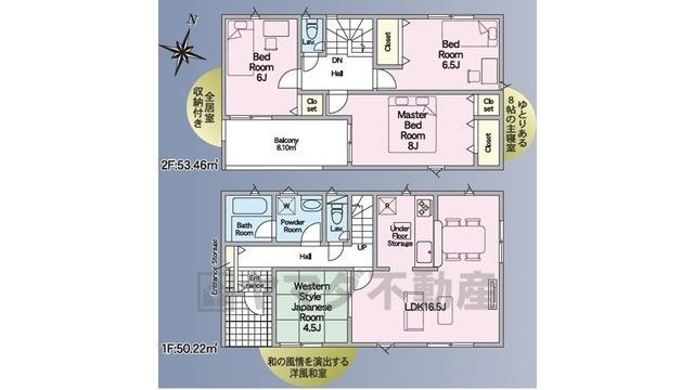 LDK16.5畳、和4.5畳、洋6畳、洋6.5畳、洋8畳 |
